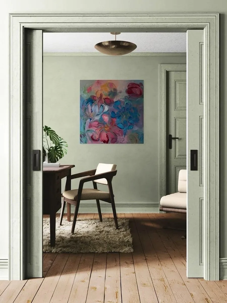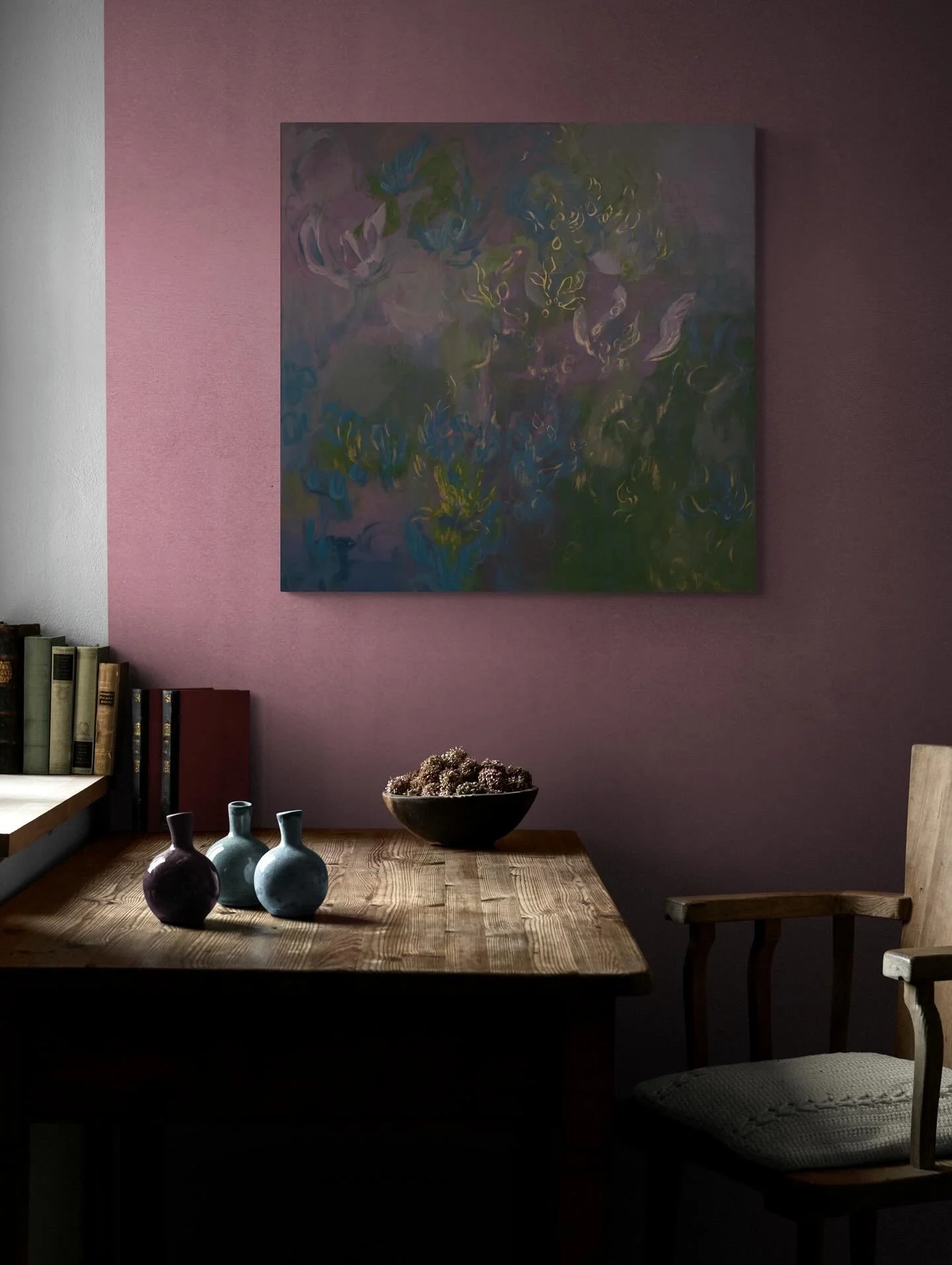 When you change the color of the wall, you also change the visual environment in which the work is located. A deep, dark shade can give calm and weight to bright or expressive works, while a light or neutral wall can give complex color compositions room to breathe. Color choice can thus emphasize emotions, progressions and moods in the image, almost like changing the music for a film – suddenly you see something new.